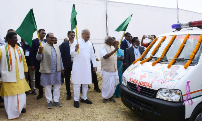 बलरामपुर। तातापानी महोत्सव में सम्मिलित होने पहुंचे मुख्यमंत्री भूपेश बघेल ने जिले में बेहतर स्वास्थ्य सुविधा हेतु रामानुजगंज विधायक बृहस्पत सिंह के मद से 09 एम्बुलेंस वाहनों को हरी झण्डी दिखाकर रवाना किया।