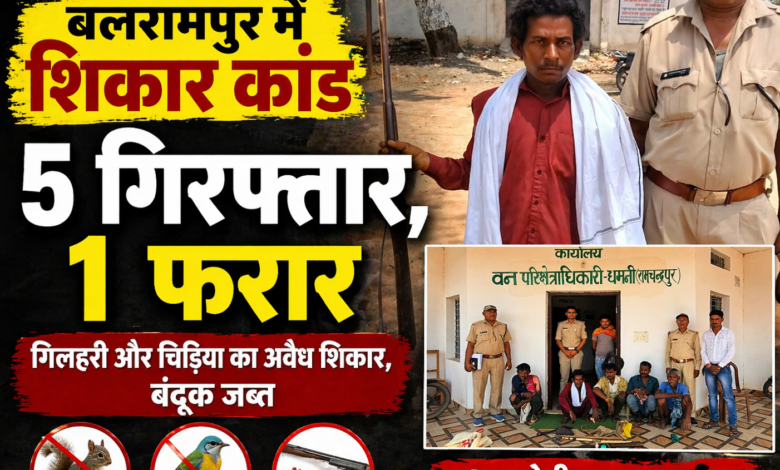 बलरामपुर में अवैध शिकार का पर्दाफाश: 5 आरोपी गिरफ्तार, एक अब भी फरार