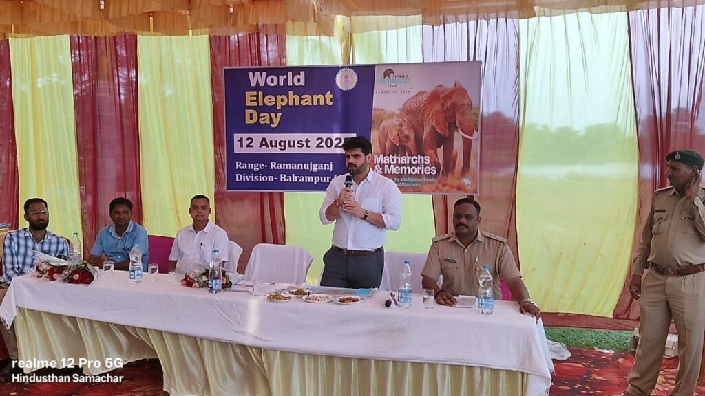 विश्व हाथी दिवस के अवसर पर मंगलवार को रामानुजगंज वन वाटिका में वन विभाग द्वारा विशेष कार्यक्रम का आयोजन किया गया। इस अवसर पर वन विभाग के अधिकारी-कर्मचारी, स्थानीय विद्यालयों के शिक्षक और बड़ी संख्या में स्कूली बच्चे मौजूद रहे।