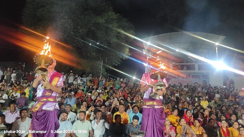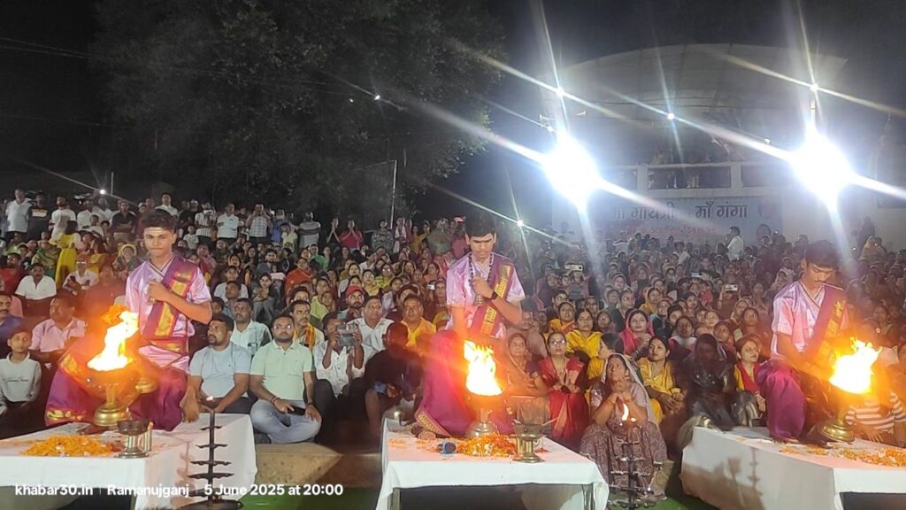गंगा दशहरा और विश्व पर्यावरण दिवस के पावन संयोग पर रामानुजगंज नगर में एक प्रेरणादायक और भव्य आयोजन किया गया। नगर की जीवनदायिनी कन्हर नदी के उत्तरवाहिनी तट पर वाराणसी शैली की गंगा आरती का आयोजन नगरवासियों के धार्मिक विश्वास और पर्यावरणीय चेतना का प्रतीक बन गया।
