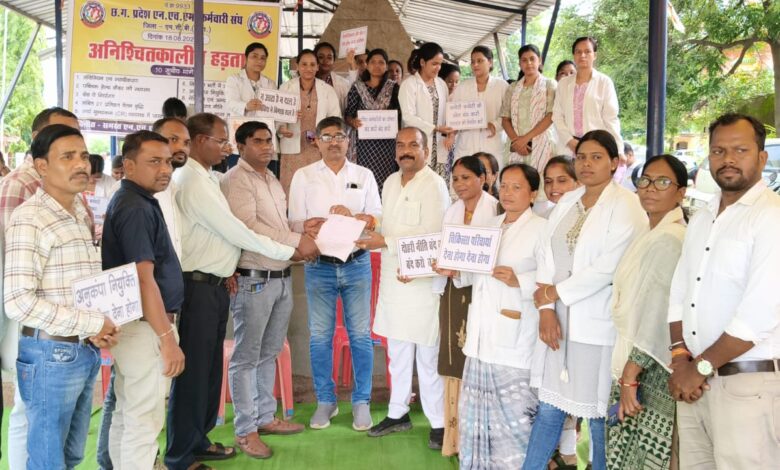 मनेन्द्रगढ़ में छत्तीसगढ़ प्रदेश एनएचएम कर्मचारी संघ का धरना प्रदर्शन चौथे दिन भी जारी है। भरतपुर-सोनहत विधानसभा के पूर्व विधायक गुलाब कमरो ने गुरुवार को धरनास्थल पर पहुंचकर कर्मचारियों को समर्थन दिया।