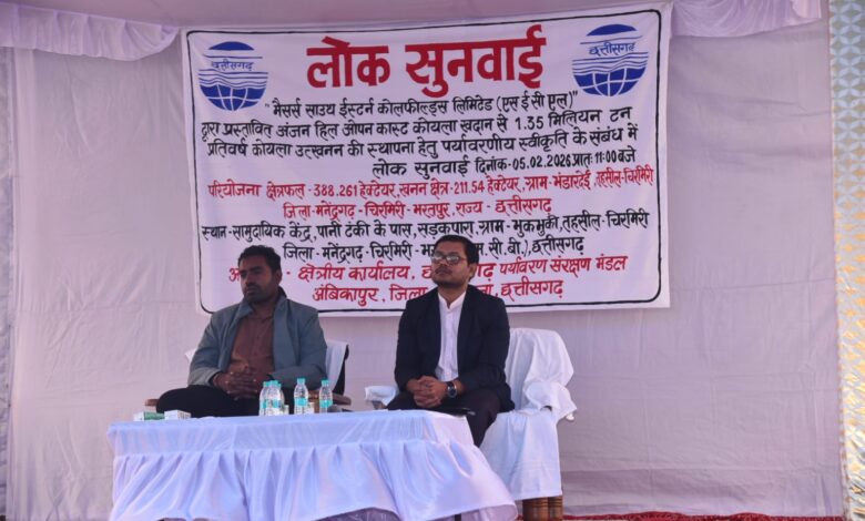 अंजन हिल कोयला खदान परियोजना की जनसुनवाई संपन्न, स्थानीय प्रतिनिधियों ने जताया समर्थन 388.261 हेक्टेयर क्षेत्र में प्रस्तावित परियोजना, निजी भूमि अधिग्रहण नहीं होगा – एसईसीएल महाप्रबंधक