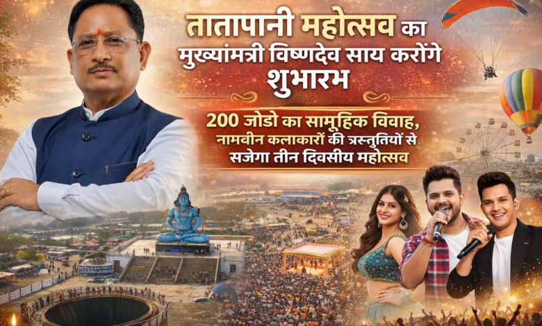 तातापानी महोत्सव का मुख्यमंत्री विष्णुदेव साय करेंगे शुभारंभ, 200 जोड़ों का सामूहिक विवाह,नामचीन कलाकारों की प्रस्तुतियों से सजेगा तीन दिवसीय महोत्सव