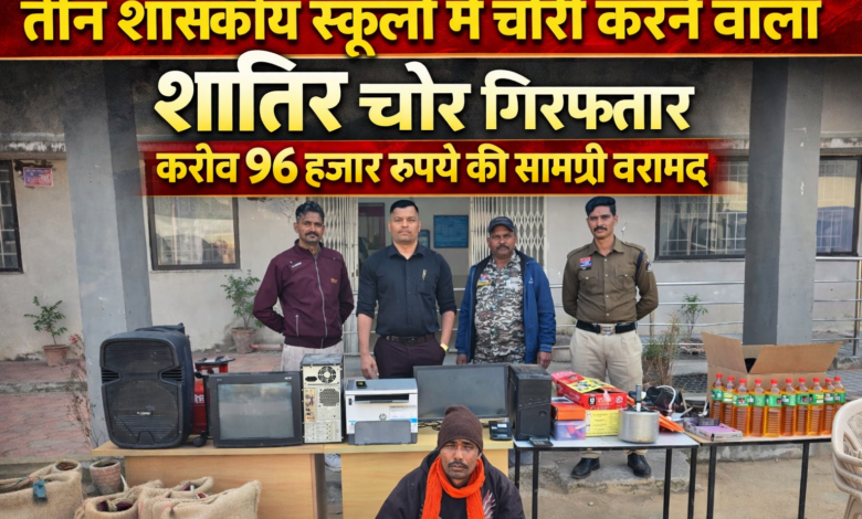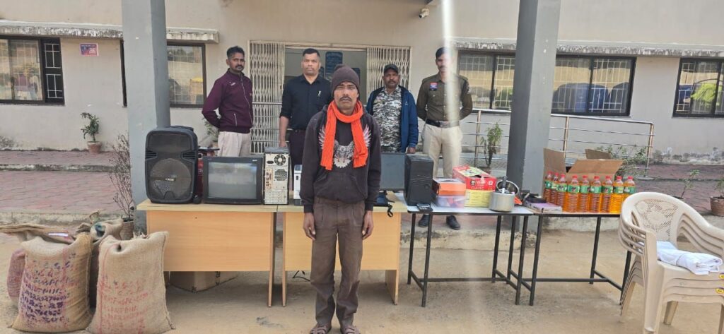 तीन शासकीय स्कूलों में चोरी करने वाला शातिर चोर गिरफ्तार, करीब 96 हजार रुपये की सामग्री बरामद